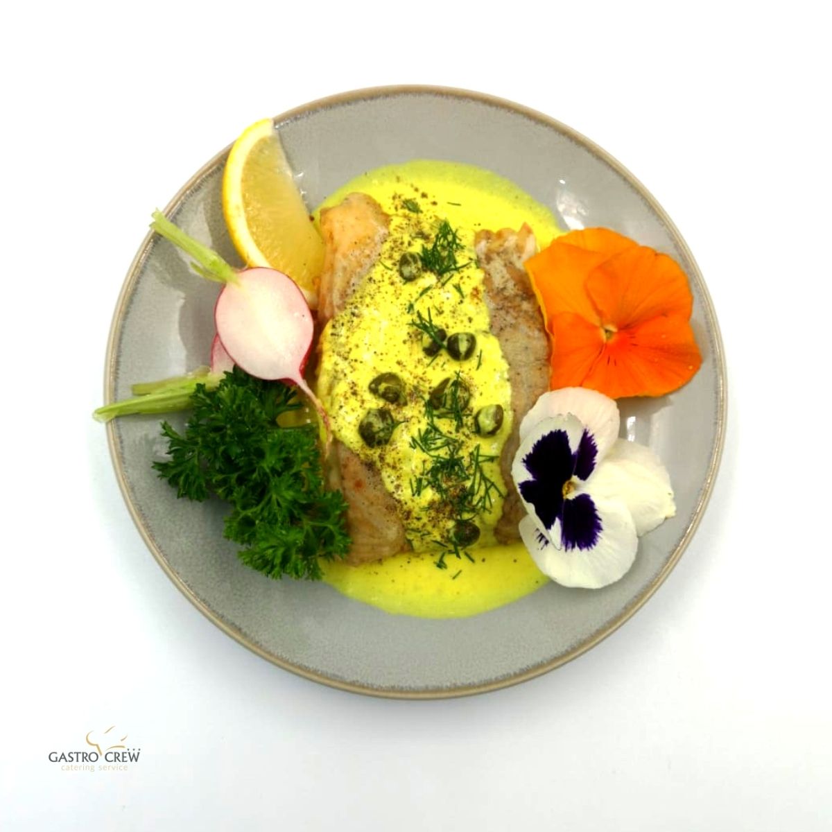- Filet z kurczaka zapiekany pod mozzarellą z sosem pesto, ziemniakami i surówką wiosenną